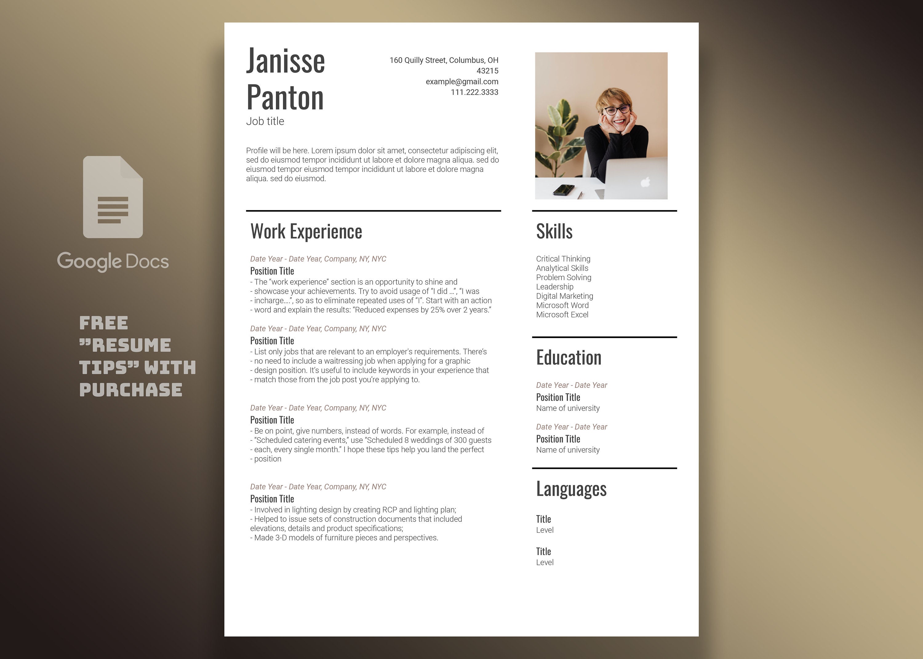 Google Docs Resume Template With Cover Letter Instant Etsy